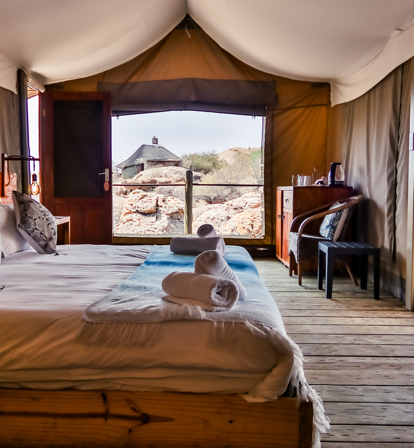 Experience comfort and simplicity in our tented chalets, each designed to blend into the surrounding landscape. Whether you're seeking peaceful solitude or a base for adventure, our rooms offer the perfect retreat with stunning views and a deep connection to nature.